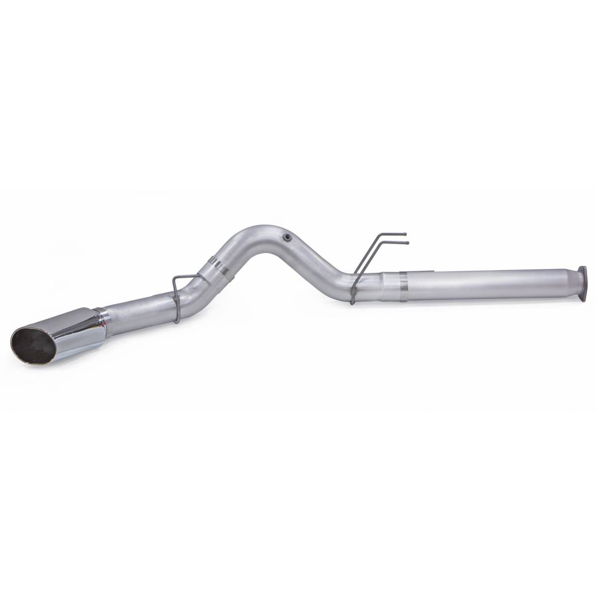 5 inch 409 stainless steel constant-diameter DPF-back system with negative backpressure SideKick tip. 82 percent less backpressure than stock, allowing the engine to produce more horsepower. Improves flow and cuts backpressure. Includes Huge Polished Chrome SideKick tip.